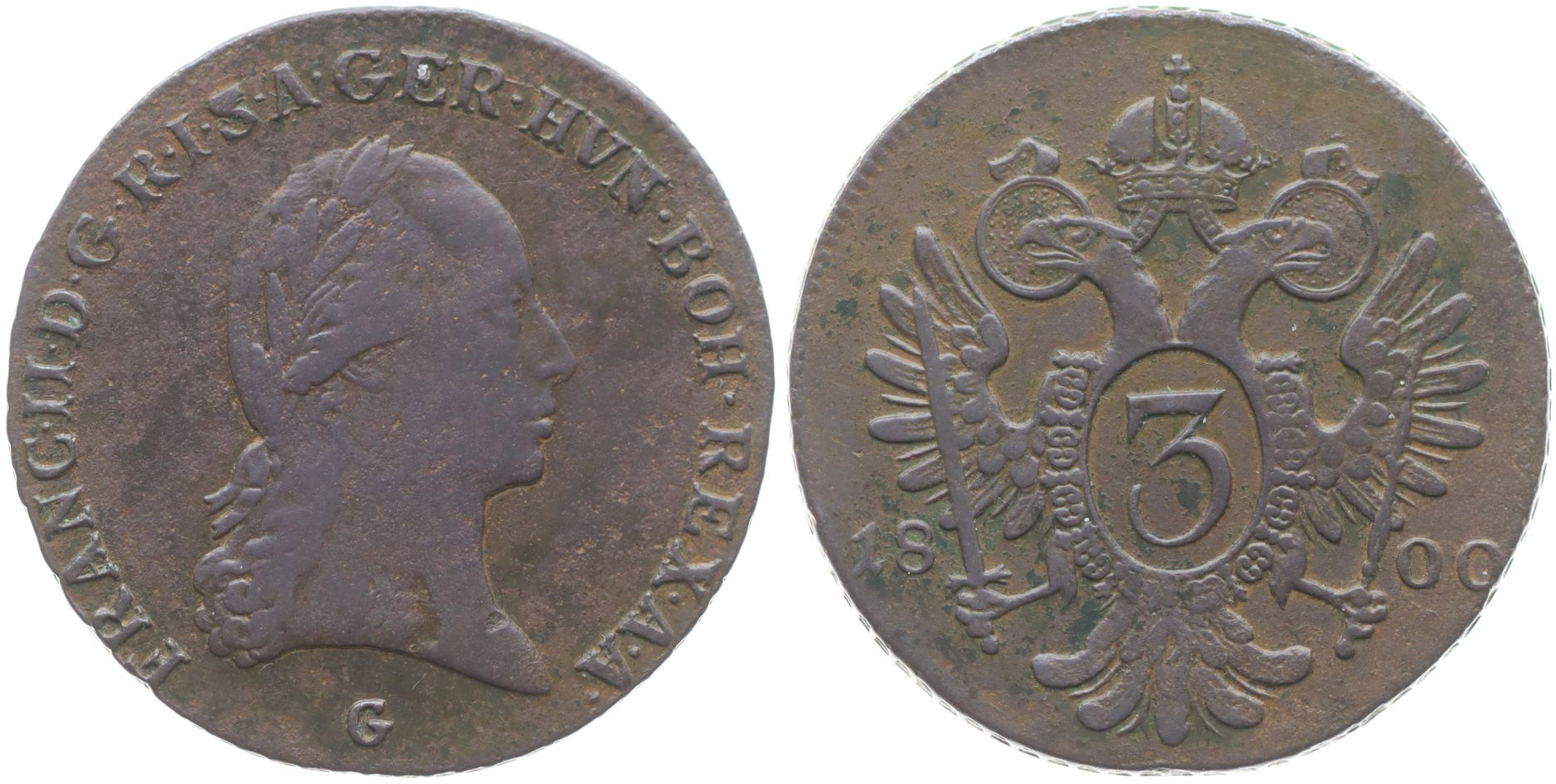 Cu 3 Krejcar 1800 G, minc.Nagybanya, Her.1051