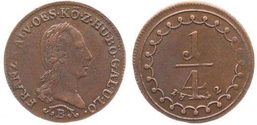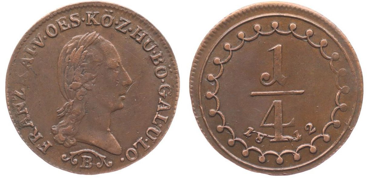 Cu 1/4 Krejcar 1812 B, minc.Kremnice