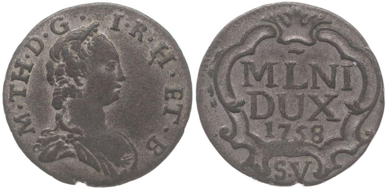 V Soldi 1758, Milán, Nov.192, Cr.18, Her.1794_R!