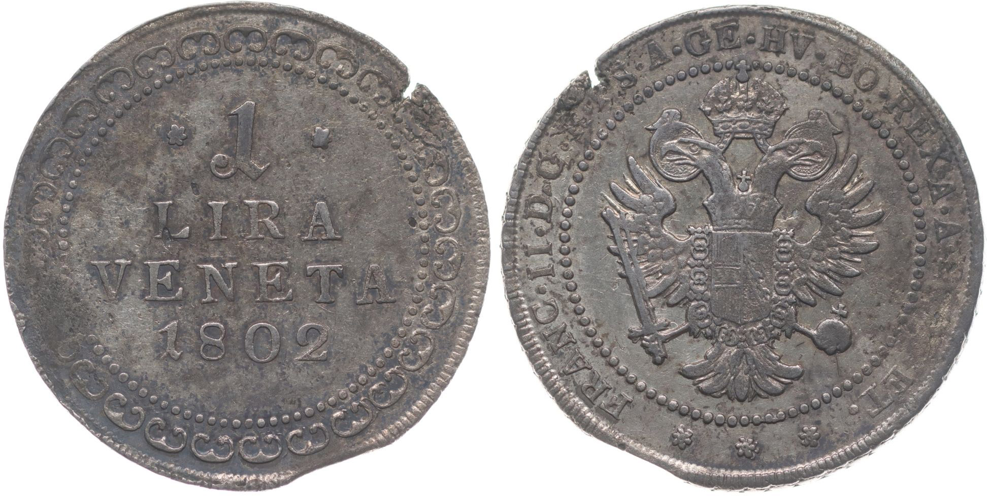 1 Lira 1802 - pro Benátky, P.33, Her.582_dr.kraj.stř., dr.napr.stř. R!