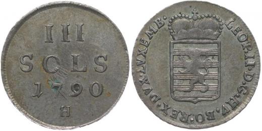III Sols (12 Liards) 1790 H pro Lucembursko, P.26, Her.95