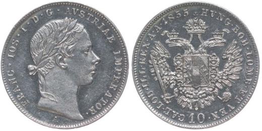 10 Krejcar 1855 A_jeden z prvních odražků (Erstabschlag)