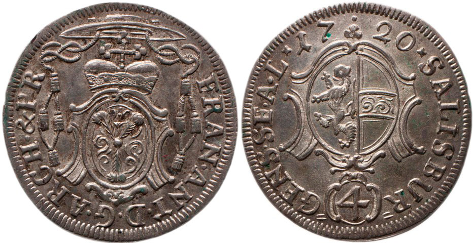 SALZBURG ARCIBISKUPSTVÍ 4 krejcar (Batzen) 1720, Zöttl 2459, Probszt 2045 0/0