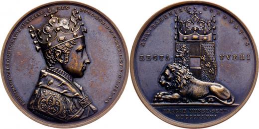 Medaila na korunováciu Ferdinanda V. ako českého kráľa 1836; Kvalita: EF; Mincovna: Viedeň; Váha: 56,4 g; Průměr: 46,9 mm; Reference: Donebauer: 3135, Montenuovo: 2555;