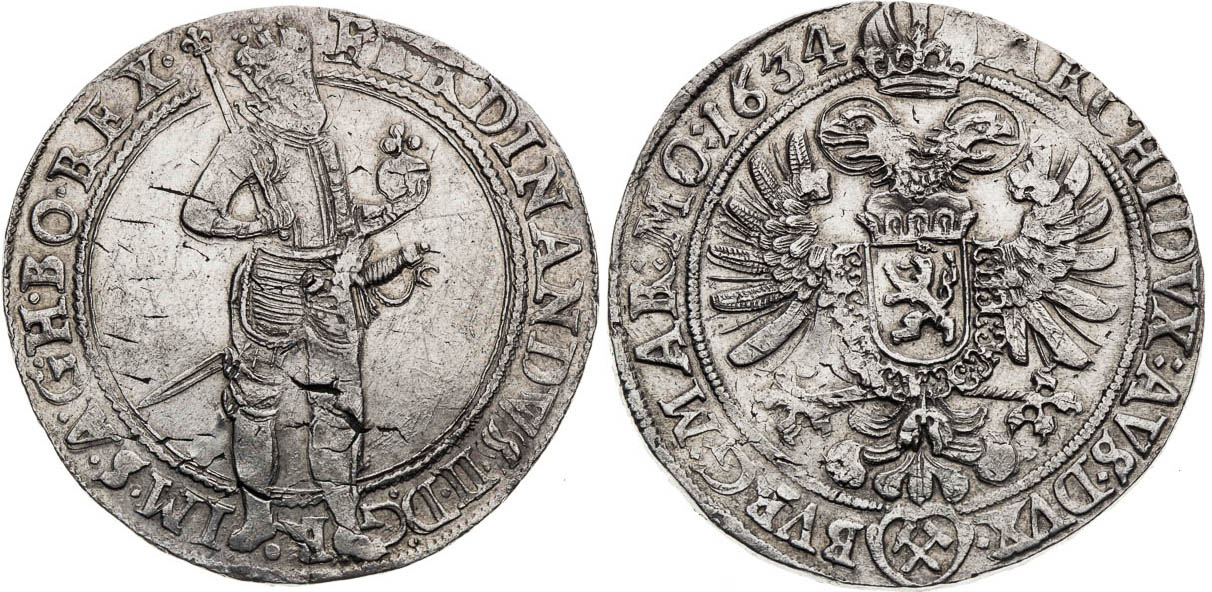 29,2 g, 41,2 mm, Ag, Voglh.: 143 R! Vzácný. Prasklý ražbou.