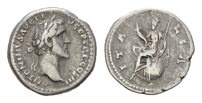 Antoninus Pius, 138-161 Denarius circa 140-143, AR 18mm., 2.94g. ANTONINVS AVG PIVS PP TR P COS III Lureate head right. Rev. ITALIA Italia towered, seated left on globe; holding cornucopiae and sceptre. RIC 73c. C 463. BMC 213.About very fine.