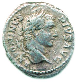 Denár, stoj.Mars drží kopí a opírá se o štít PONTIF TRP VIIII COS II Kank. 36, RIC 83