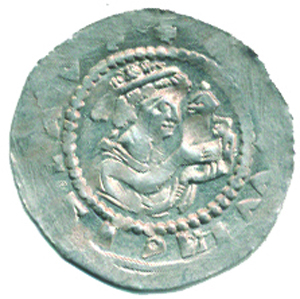 Denár C - 557 "R"_opis mírně vyražen, tém.