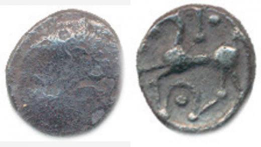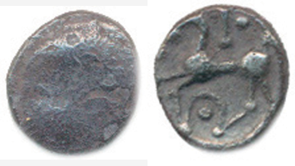 Ag mince, koníček zleva, styliz.jezdec - za ním kulička 9 mm 0,628 g