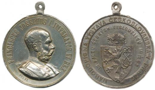 F.J.I., poprsí a opis / Národopisná výstava českoslov. v Praze III. sjezd českých vysloužilců 1895 sign.: PICHL Sn 39 mm pův.ražené ouško