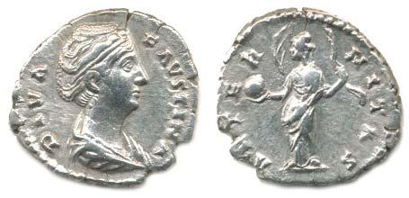 Denár, stoj. Aeternitas drží globus a nad hlavou ji vlaje závoj AETERNITAS RIC 351; S 4578 2,78 g