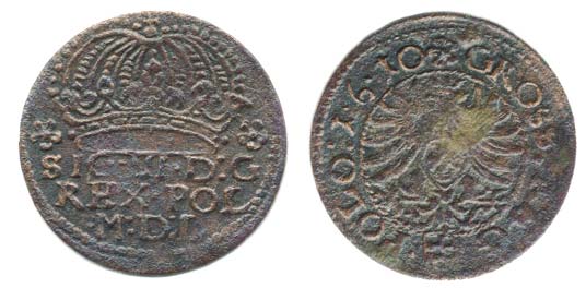 Groš korunní 1610, Krakow-Stanislawski "dobový Cu padělek" Kop. II/XIVk/5