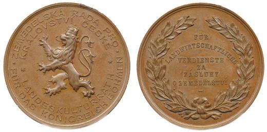 Zemědělská rada pro království České / Za Zásluhy o zemědělství česko-něm.nápis sign.: KŘÍŽ bronz 42 mm "sbírkový kus !"