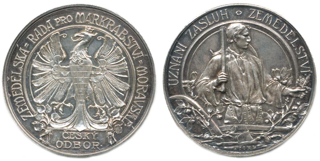 Uznání zásluh o zemědělství / Zemědělská rada pro Markrabství mor avské - Český odbor, orlice sign.: PICHL Ag 45 mm 35,06 g +původní etue