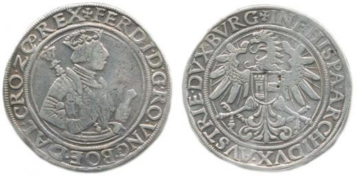 Tolar b.l., Tyroly, Hall Voglh. -, +FERDI.D:G.RO.VNG.BOE.DAL .CRO.ZCo.REX / +INF.HISPA.ARCHIDVX.AVSTRIE.DVX.BVRG (oboustranně perlov. a hladké okruží)