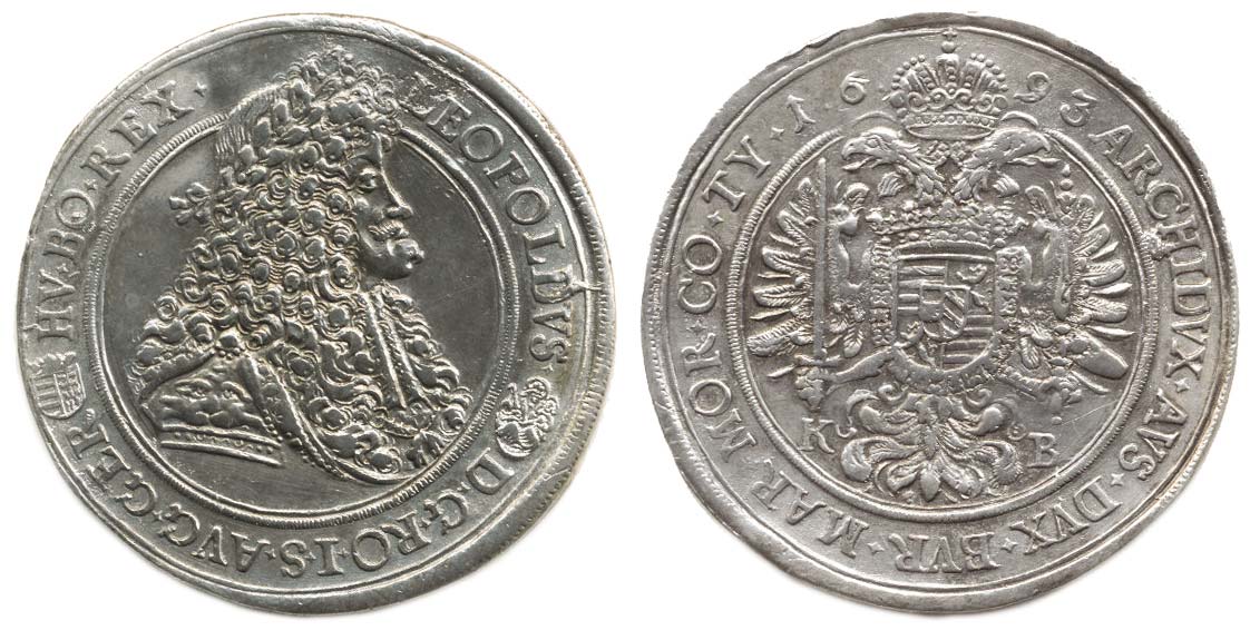 Tolar 1693 KB - široký; typ LEOPOLDVS. D.G.RO.I.S.AVG.GER ... Husz. 1373 "R" 28,163 g "Chaurův štítek"