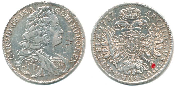 XV kr. 1737 b.zn., Vratislav červená Fischerova zn.