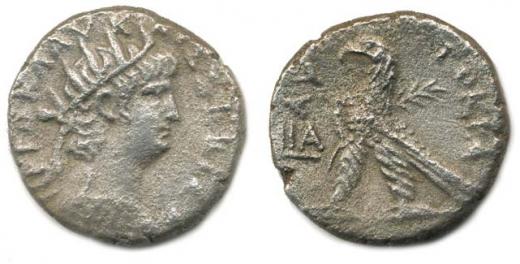 Egypt-Alexandria, Billon tetradrachma (11. rok vlády), busta císa ře s paprs. korunou / pták Fénix Sear 2003