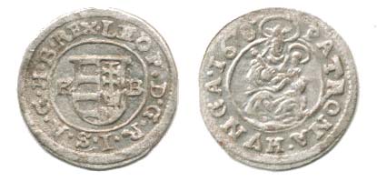 Denár 1678 K-B Hal. 402 var.: tečka před a za datací