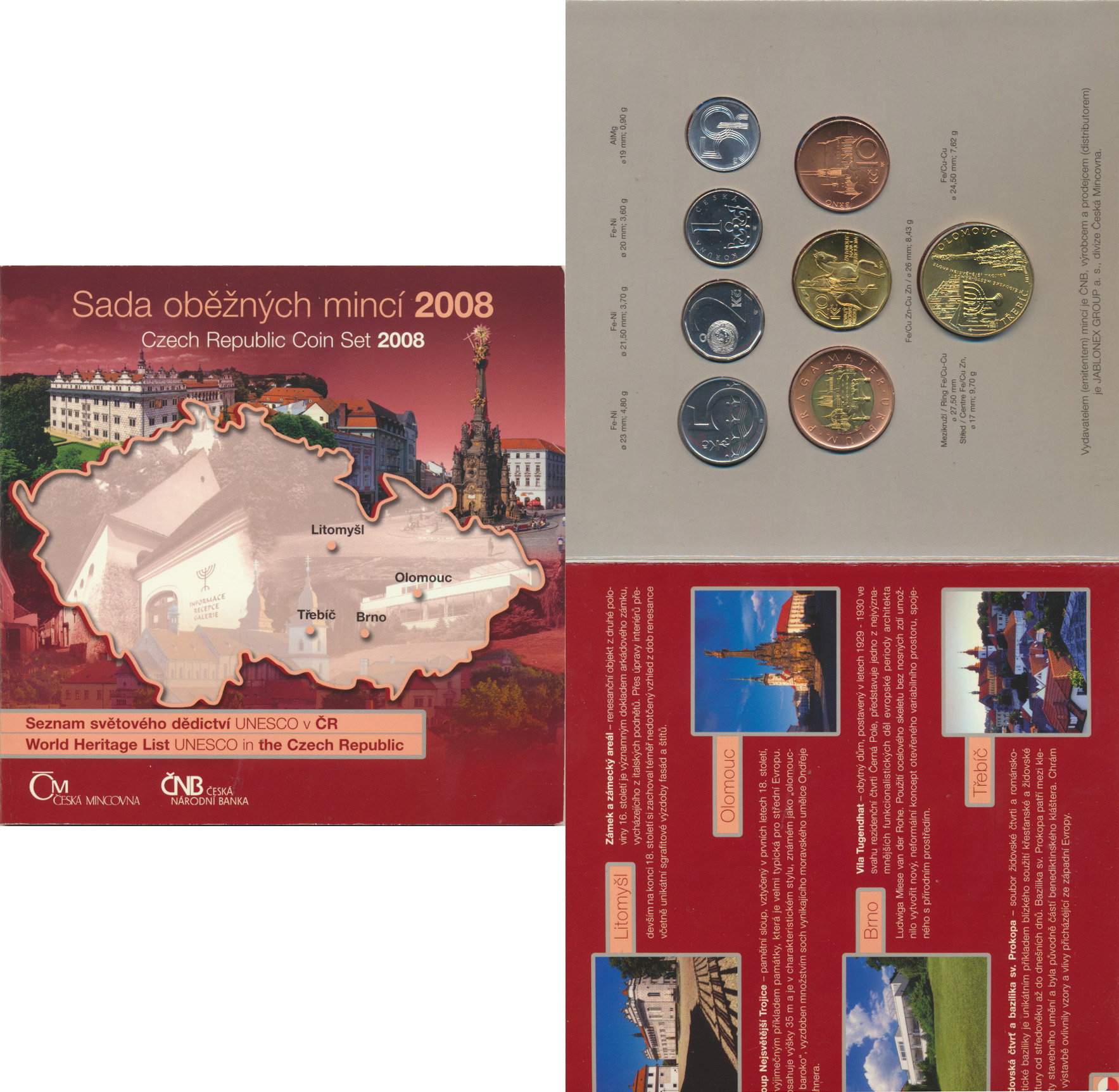 Ročníková sada mincí 2008 - UNESCO +žeton Litomyšl, Olomouc, Třebíč, Brno (10 000 ks) "bezchybný kartonový přebal !"