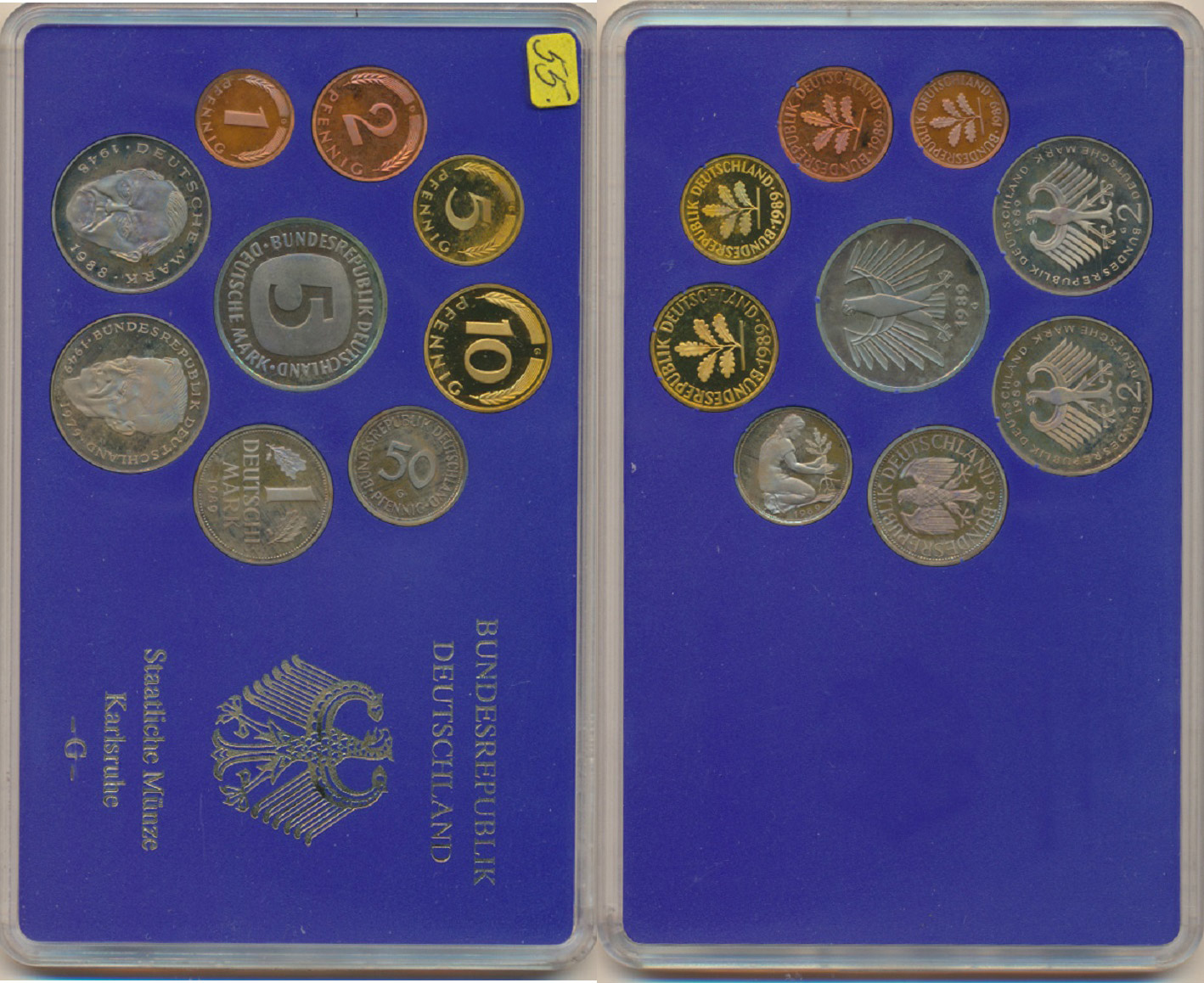 Ročníková sada mincí 1989 minc. G (1, 2, 5, 10, 50 Pf., 1, 5,2 DM - Erhard, Schumacher) 9 ks v orig. plexi balení mincovny PS 94