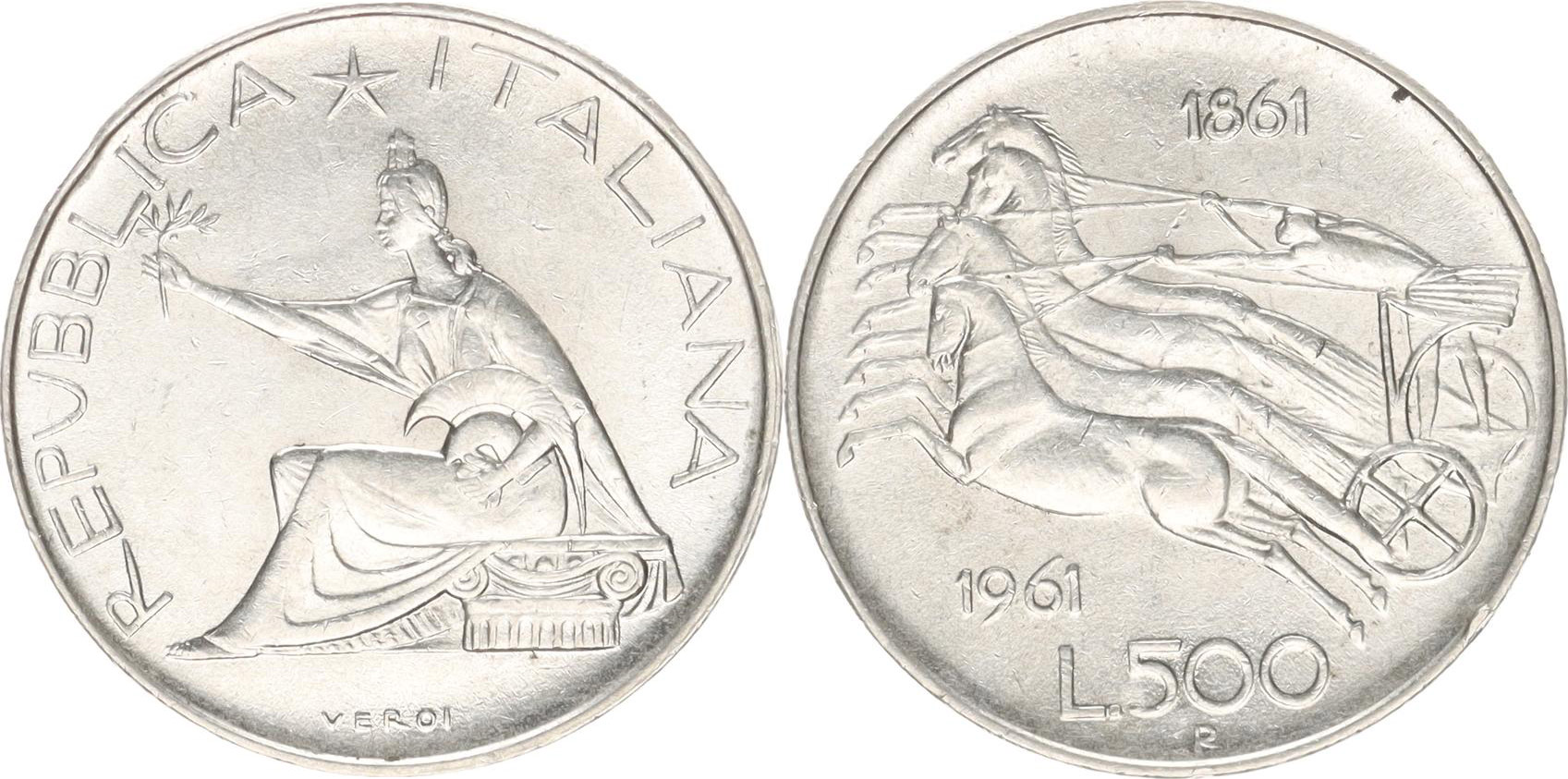 500 Lire 1961 R - Quadriga KM 99 Ag 835 11,00 g