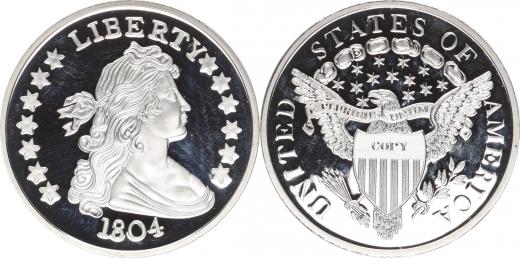 1 Dollar 1804 "sběratelská ražba" bílý kov 40 mm 28,155 gkapsle