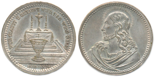 Německo - Křestní medaile, A: Poprsí Krista zleva / R: Křtitelnice před oltářem, v úseči MARC. 16 V. 16 sign.: H. LorenzAg 22 mm