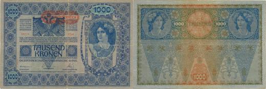 1000 Kronen b.l. /1919/ II. vydání sér. 2738 přetisk DEUTSCHÖSTERREICH Pick 61