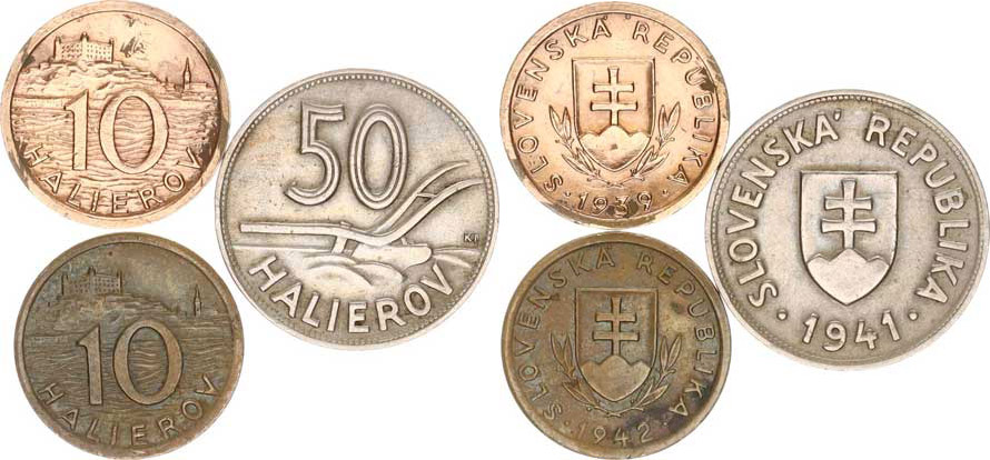 Slovensko (1939-1945), 10 hal. 1939, 1942; +50 hal. 1941 3 ks