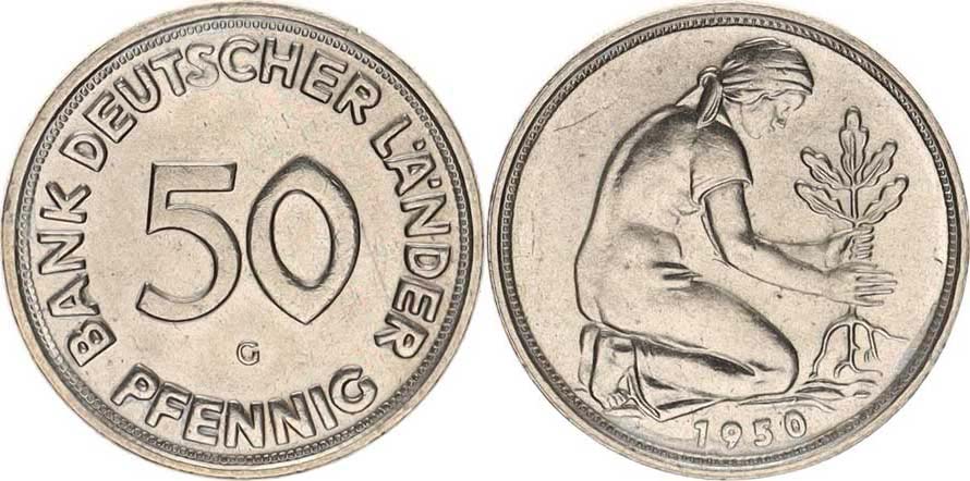 50 Pfennig 1950 G - Bank Deutscher Länder "RR" KM 104 (raženo 30 000 ks !) "mimořádná kvalita"