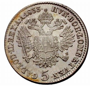 20 Krejcarů (Konvenční měny) = 24 Krejcarům (pro tzv. Přední Rakousy)